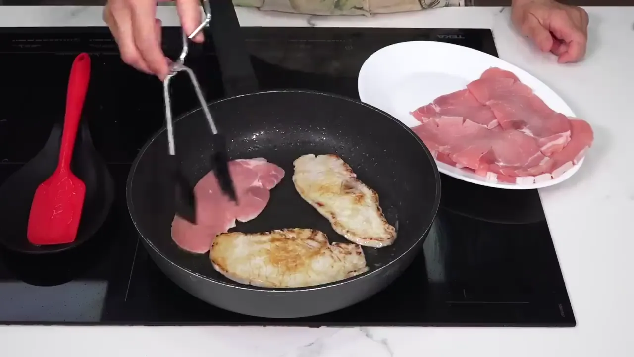 En la misma sartén, añade los filetes de lomo de cerdo y cocínalos por tandas a fuego alto, salpimienta al gusto. Retíralos cuando estén dorados pero jugosos, ya que se terminarán de cocinar en el horno.